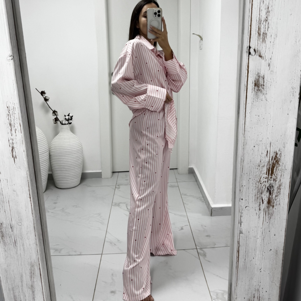 ₪179Hermosa Cozy Heart- פיג'מת סאטן חורפית עם לבבות- ורוד אפרסק