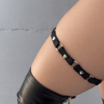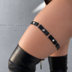 בירית ירך אלסטית בעיצוב מודרני הכוללת רצועה רחבה ונוחה עם חיבורי מתכת וטבעות כסופות לאורכה,