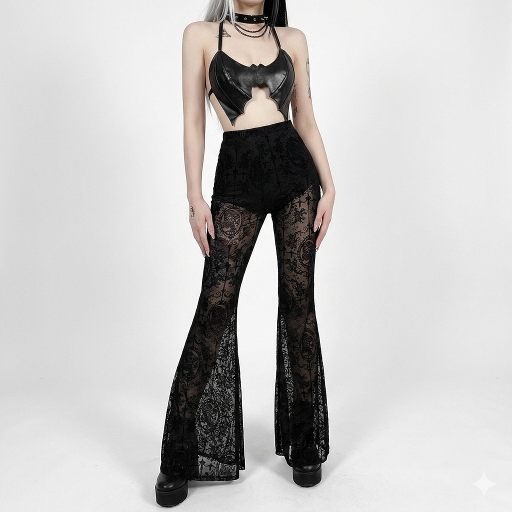 מכנס תחרה שקוף דגם "Obsidian Flare"