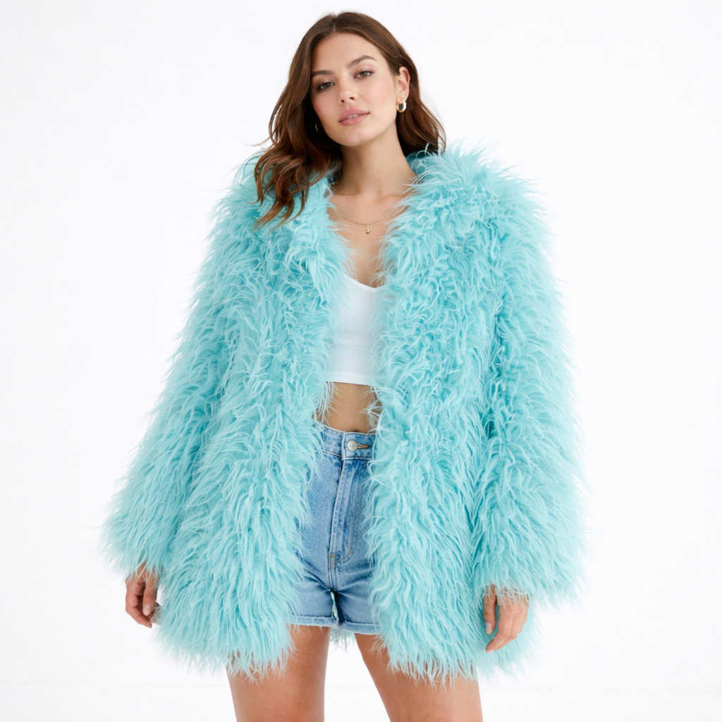 מעיל פרוותי מושלם בצבע תכלת עדין.