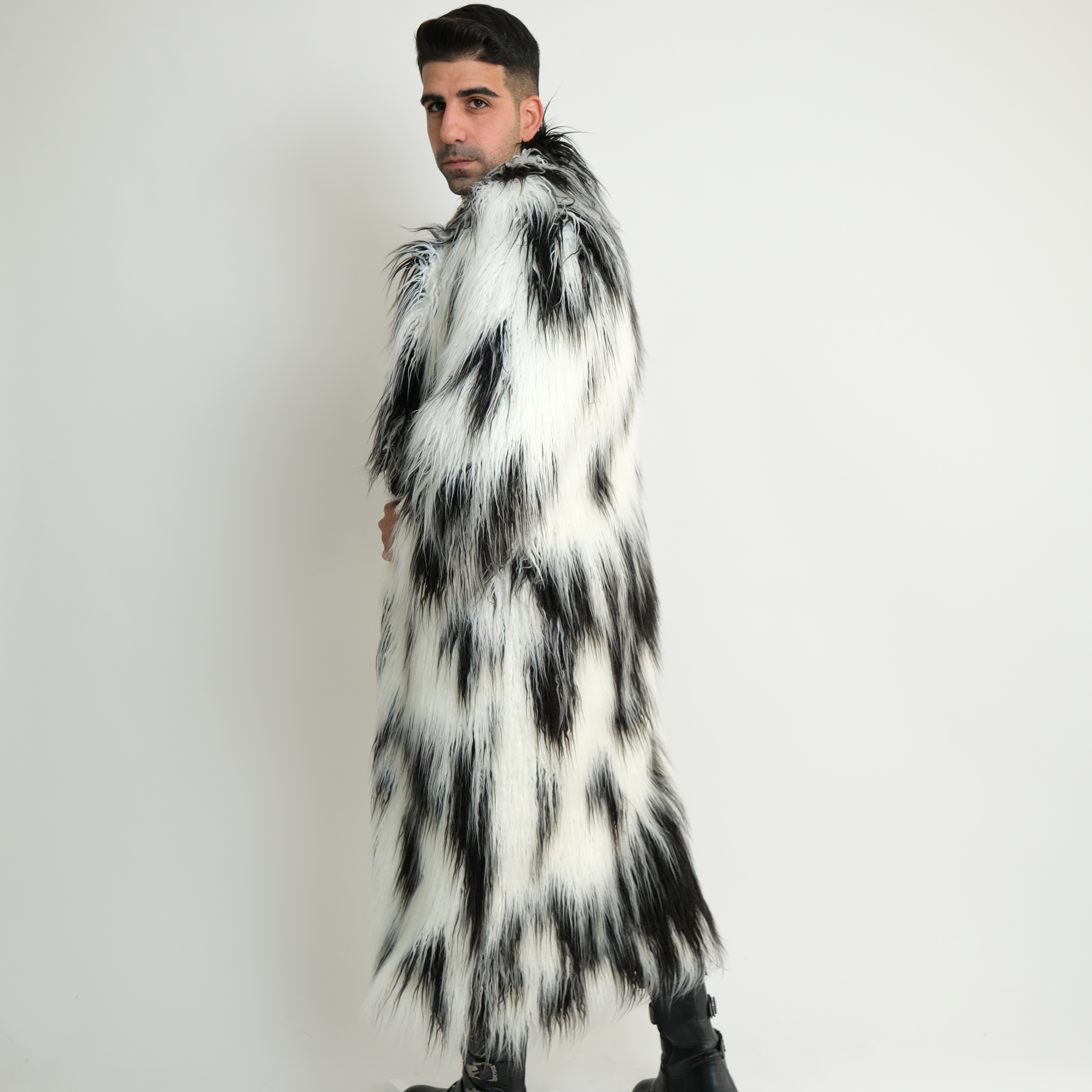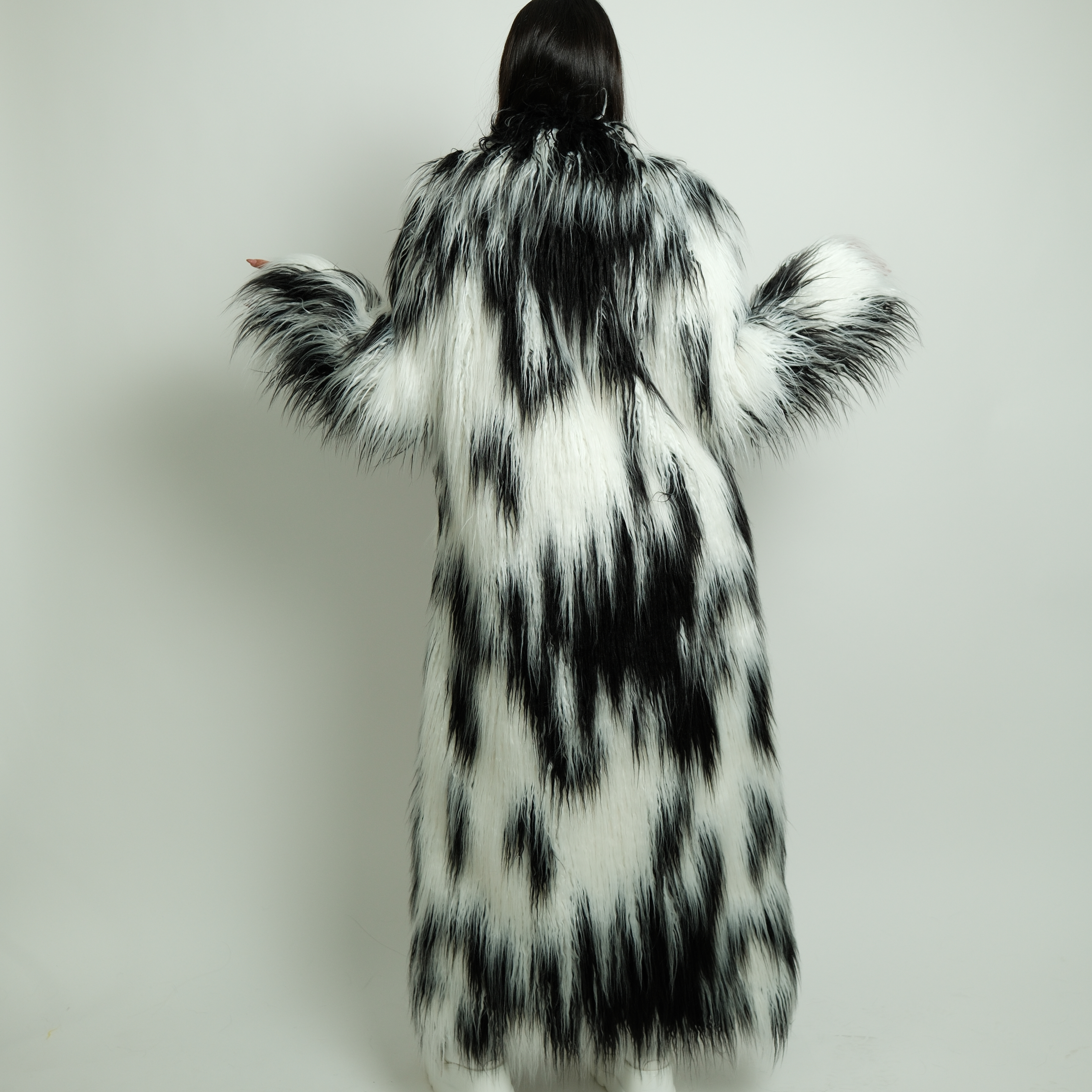 מעיל פרווה דגם "Rainbow Fur Coat"- שחור לבן