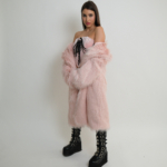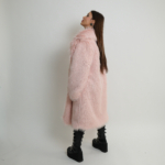 מעיל פרווה ארוך בעיצוב עדין וקלאסי, עם טקסטורה רכה ומראה אלגנטי ורגוע.