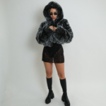 מעיל פרווה קצר דגם "Fur Bliss"- שחור לבן