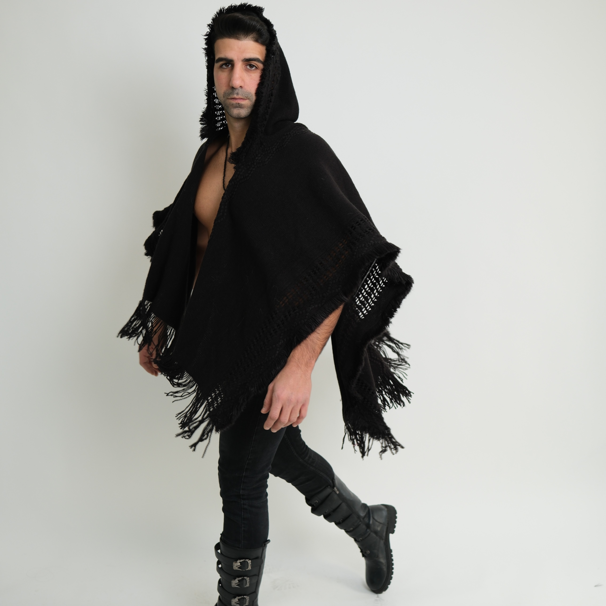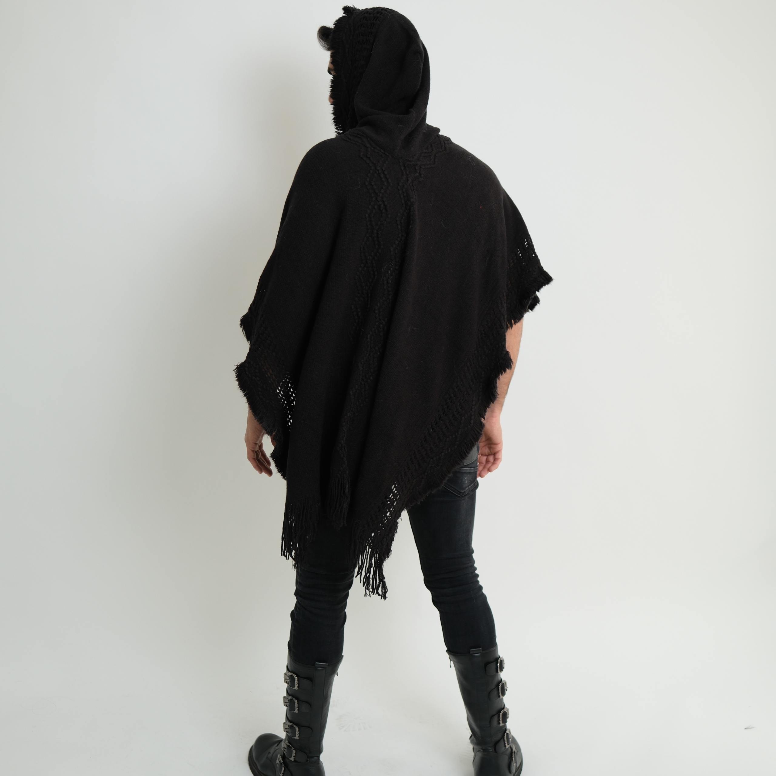קימונו בוהמייני עם כובע ופרנזים דגם "Mystic Nomad"- שחור