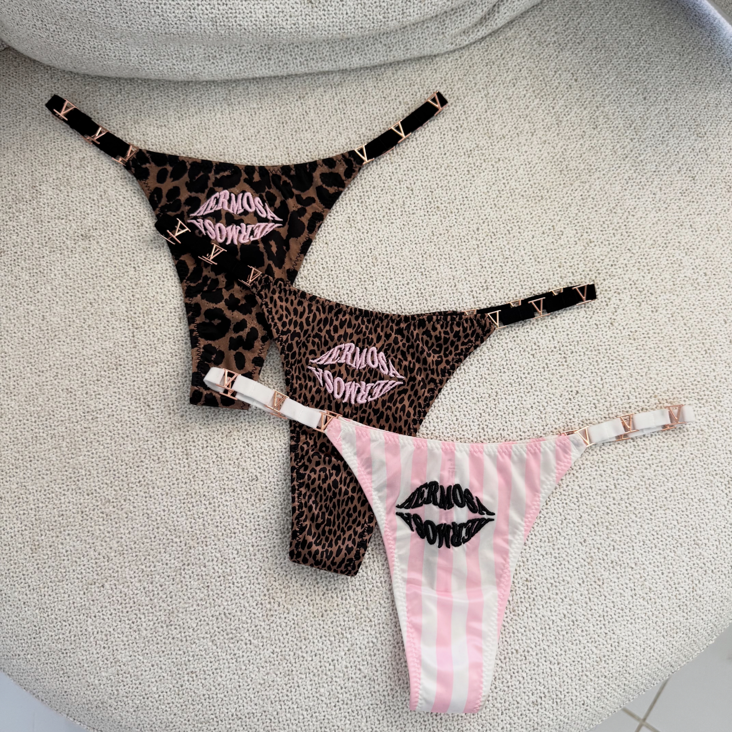 תחתון חוטיני בעיצוב איקוני וסקסי במיוחד, עם רקמת שפתיים ולוגו HERMOSA בחזית – סמל הסטייל והנשיות.