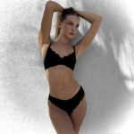 התחתון בגזרת חוטיני, עשוי בד חלק ונעים עם שוליים מתחרה רכה המחמיאה לגוף ויוצרת מראה רך ונקי.