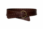 חגורת מותן רחבה בגוון חום עם ניטים דקורטיביים ואבזם מתכתי מעוגל בגימור וינטג’.