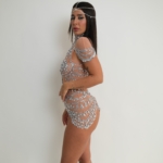בגד גוף יוקרתי בעבודת גימור מוקפדת, משובץ אבנים איכותיות ליצירת מראה עוצמתי, זוהר ובעל נוכחות בלתי מתפשרת.