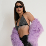 גזרת משולשים עם פרנזים עדינים מאבני קריסטל היוצרים תנועה וזוהר.
