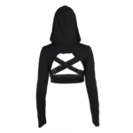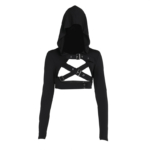 טופ קצר בעיצוב דרמטי ועוצמתי הכולל קפוצ’ון מובנה שרוולים ארוכים ומבנה רצועות עם אבזמים מתכווננים ליצירת מראה ייחודי ונועז הגזרה הקצרה והפתוחה בגב ובחלק הקדמי מעניקה לוק אורבני אופנתי ומלא נוכחות והבד האלסטי והנוח יושב בצורה מחמיאה על הגוף ומתאים לשילוב מעל בגדי גוף טופים או לוקים לפסטיבלים מסיבות ואירועי אופנה הפריט מוסיף טאץ’ אדג’י ובולט לכל הופעה ומתאים למי שמחפשת סטייל חזק מודרני ומלא אופי.