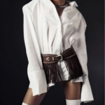החגורה נסגרת באבזם מתכתי חזק ויושבת נמוך על המותן ליצירת מראה מחטב ומודגש.