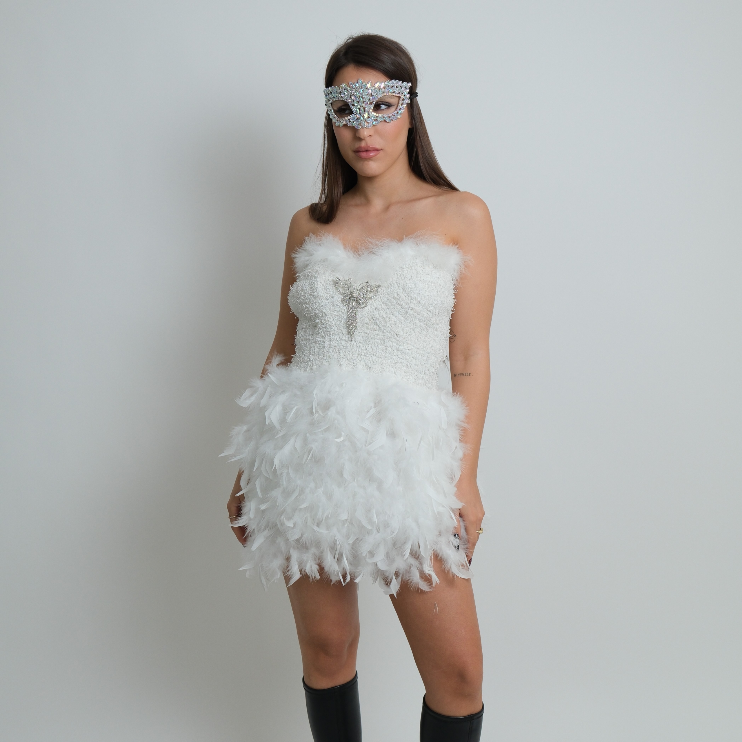 Midnight Feather- שמלת סטרפלס- לבן