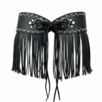 חגורת מותן רחבה בעיצוב דרמטי עם ניטים דקורטיביים ופרנזים.