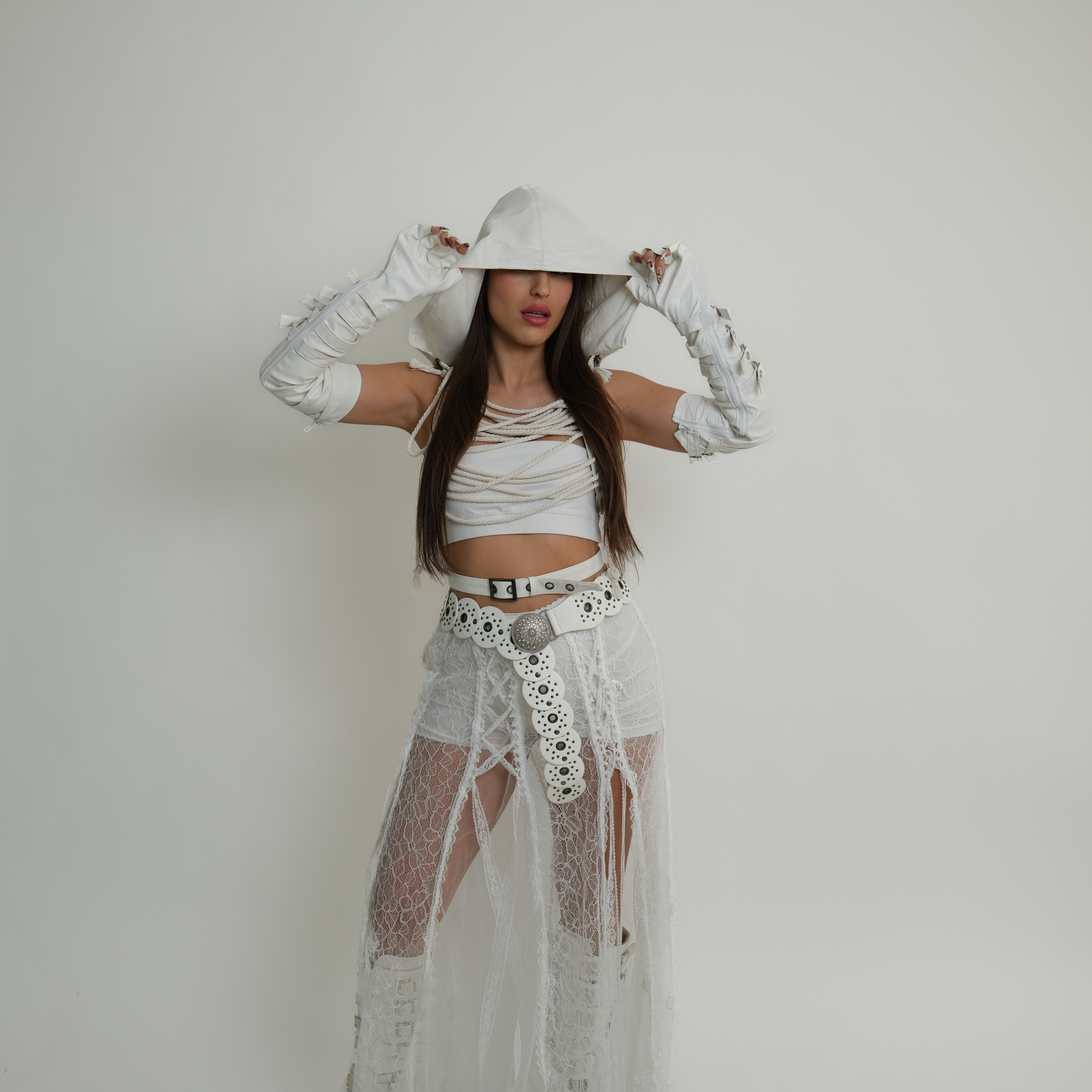כולל כובע מובנה וחבלים דקורטיביים בחלק הקדמי באזור החזה.