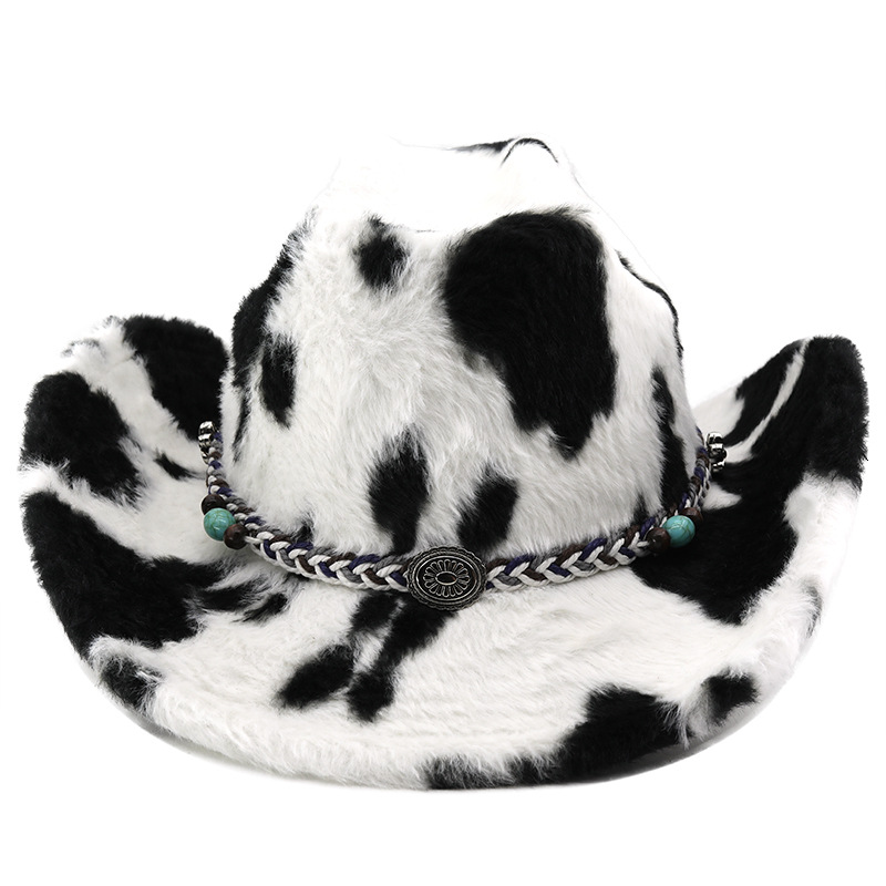 כובע קאובוי אופנתי עם טקסטורת פרווה רכה במראה ייחודי ומלא נוכחות, מושלם ללוק פסטיבלי, בוהו או מערבי טרנדי.
