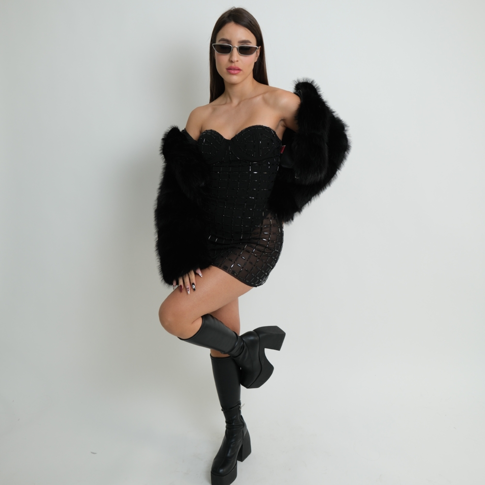 Black Crystal Muse- שמלת סטרפלס שקפקפה