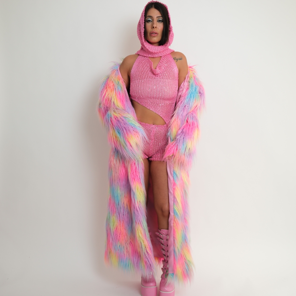 מעיל פרווה דגם "Rainbow Fur Coat"- צבעוני