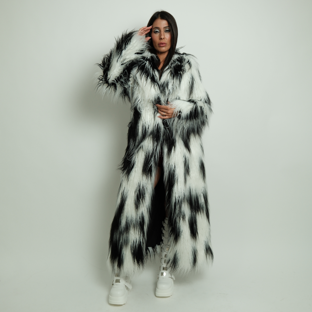 מעיל פרווה דגם "Rainbow Fur Coat"- שחור לבן
