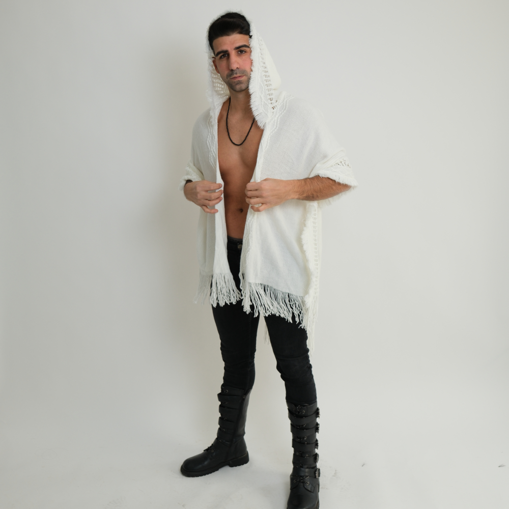 קימונו בוהמייני עם כובע ופרנזים דגם "Mystic Nomad"- לבן