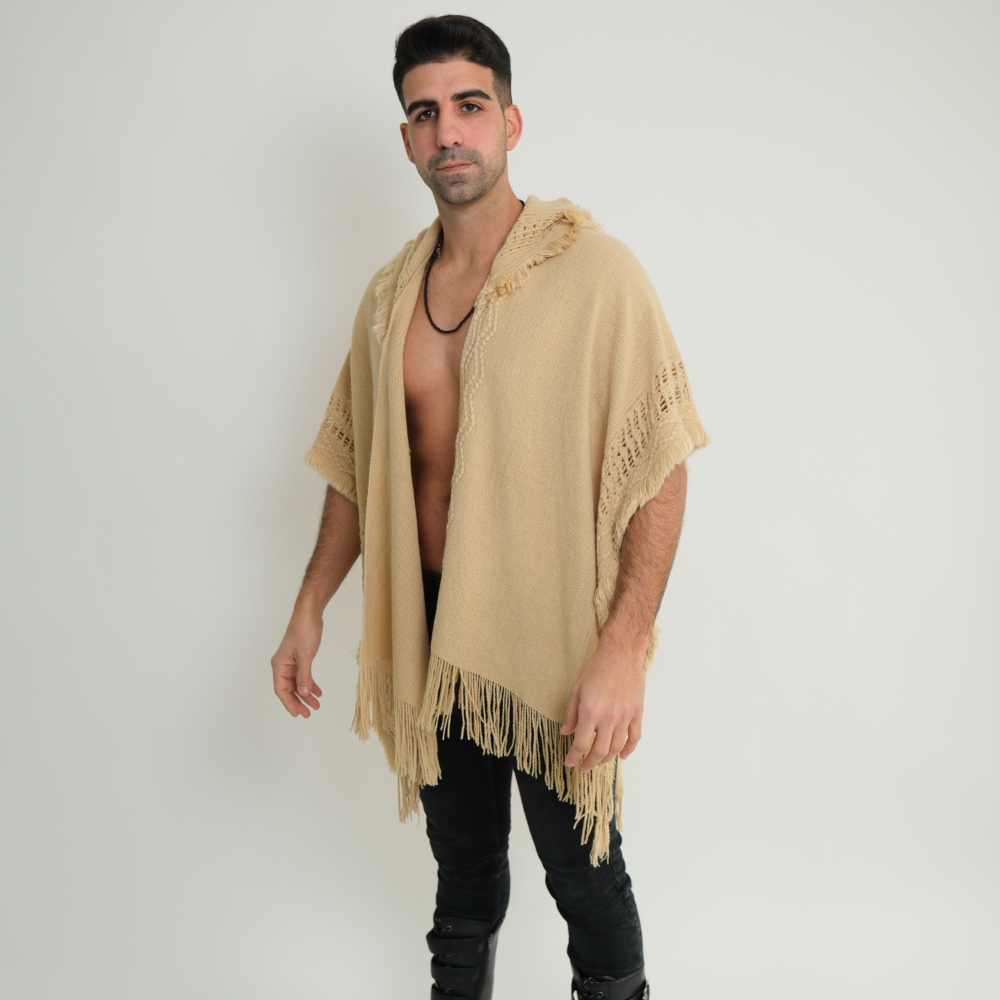 קימונו בוהמייני עם כובע ופרנזים דגם "Mystic Nomad"- קרם